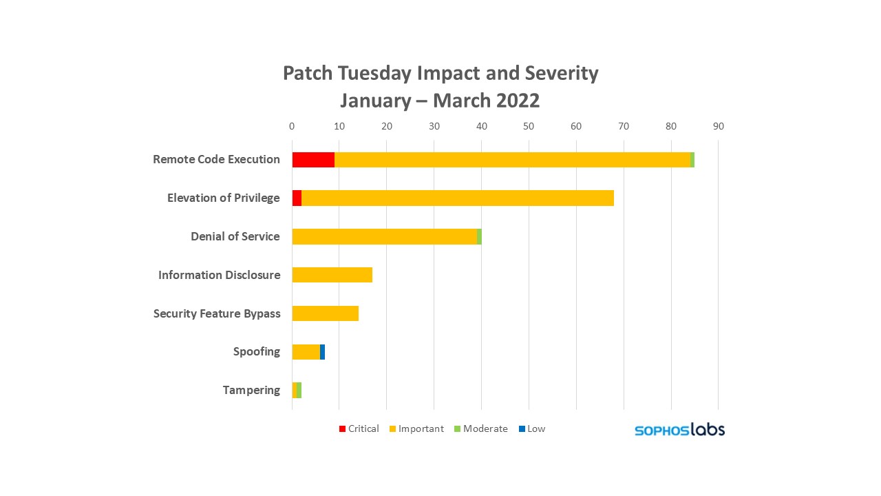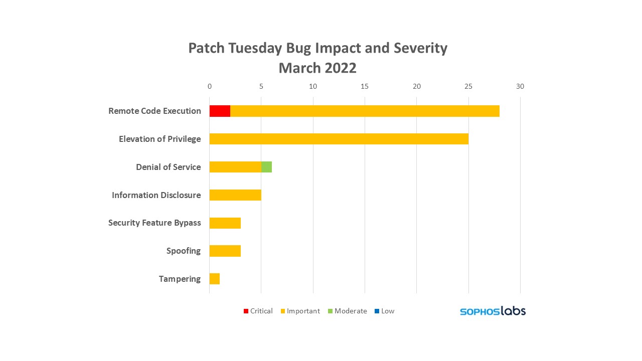 After a relatively light update load in February, this month Microsoft patches 71 vulnerabilities, covering a broad spectrum of products. Of the 71, Microsoft rated two as Critical in severity, one Moderate, and the remaining 68 are rated Important. At time of release, the company says none of the vulnerabilities are known to be under active exploitation, though there’s already a public proof-of-concept for one issue (CVE-2022-21990, a Remote Desktop Client remote code execution vulnerability).
