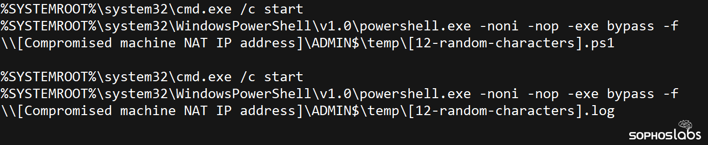 A few minutes later, the attackers moved copies of two ransomware binaries, named <target>local.exe and <target>share.exe (with the target organization’s name in the filename, redacted here) to an internal server and executed it.