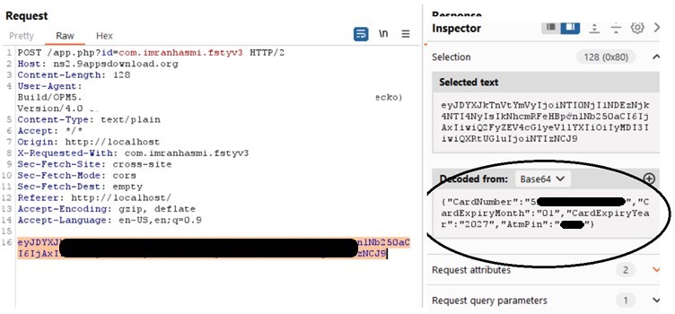 Figure 3: Inspecting the request shows a malicious URL, as well as all the target’s CVV information