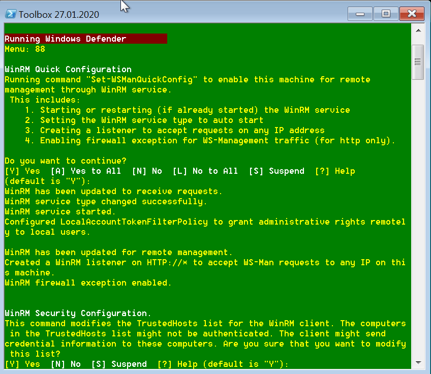 | 88 | Enables WinRM remote management using the WS-Management protocol, This allows administrative commands to be sent to the computer via an HTTP request from any IP address. |