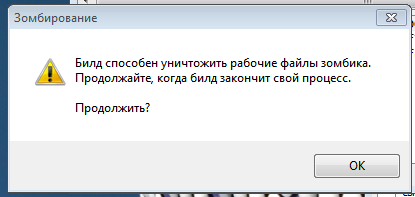 | 25 | Calls a function of the script called “Infect”, which deploys a file called javsecc.exe — called a “zombie” by the Dharma developers. ![]() Upon execution, a message box pops up (the window name translates as “Zombification”). The message reads: This build is able to destroy the working files of the “zombie”. Continue, when build process is finished. Continue? Clicking “OK” executes an AutoIT process that: