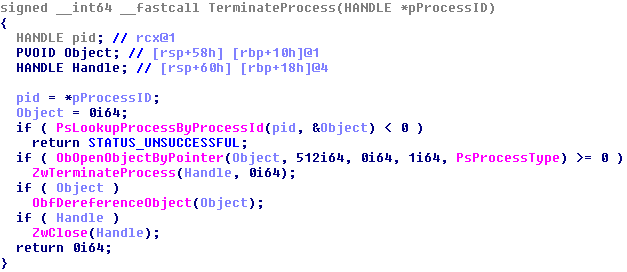 This malicious kernel driver is used to terminate processes and delete the associated files. It employs several tricks to kill these applications, even when they are in-use and protected by tamper protection mechanisms employed by security products.