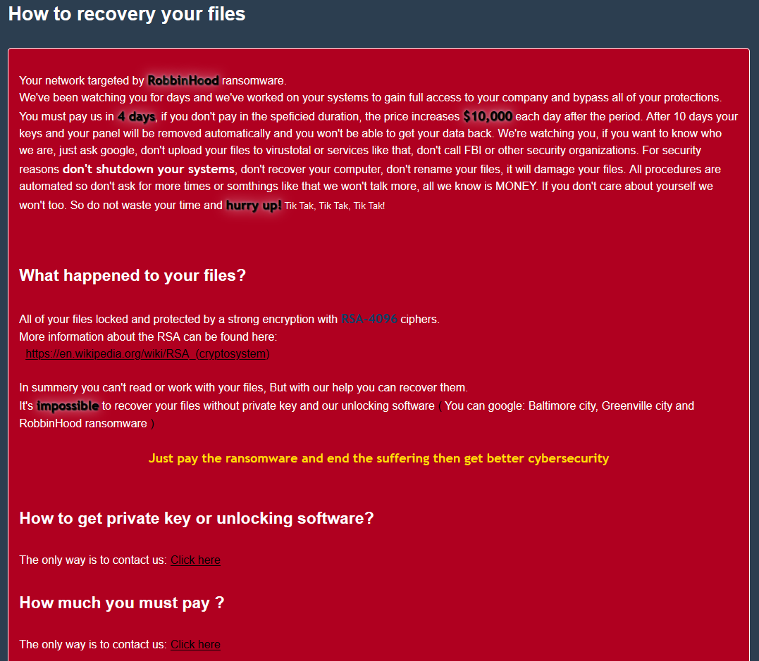 This is the first time we have observed ransomware shipping a trusted, signed (yet vulnerable) third party driver to patch the Windows kernel in-memory, load their own unsigned malicious driver, and take out security applications from kernel space. The ransomware that was being installed in both instances calls itself RobbinHood.