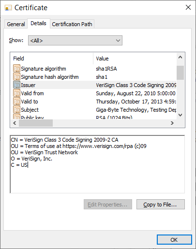 The sha1RSA Authenticode signature for the driver, with serial number 248472542c24ab8e429229acf121ca26 and thumbprint 32daee48ae406222c2bb92c4f1b7f516e537175a, expired on October 17, 2013.