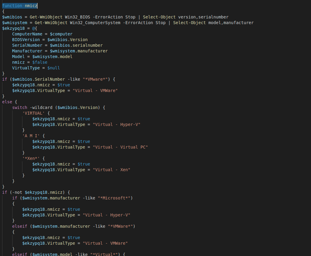 VM detection function in the scripts downloaded by the LockBit backdoor.