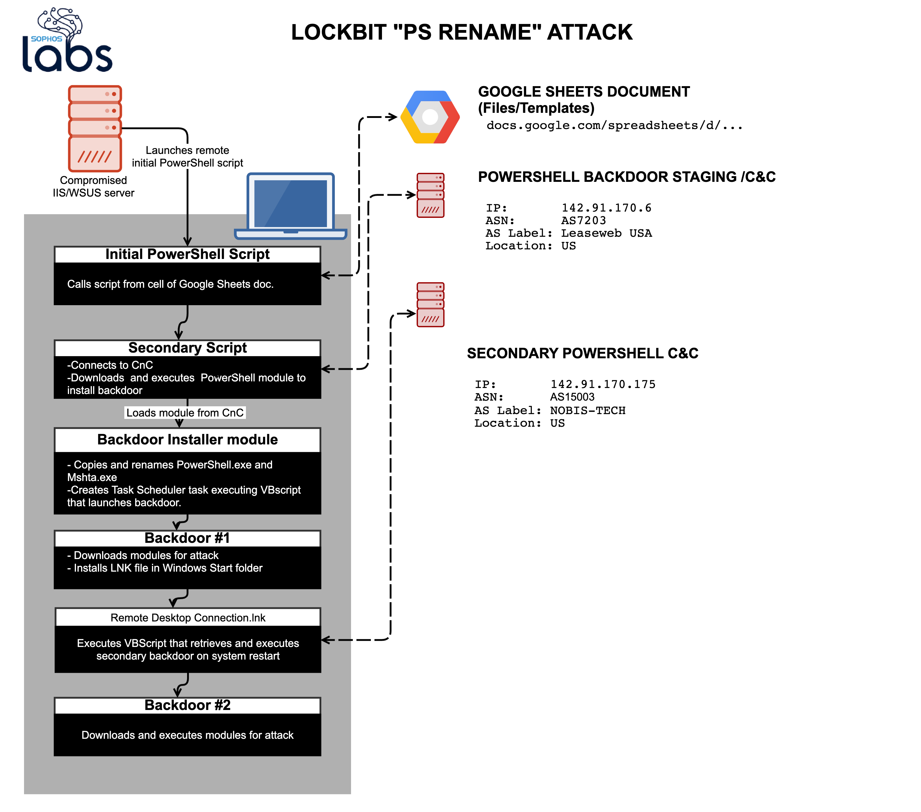 Sophos detects these abuses of PowerShell and the LockBit ransomware. A list of IOCs for these attacks is posted on the Sophos GitHub here.