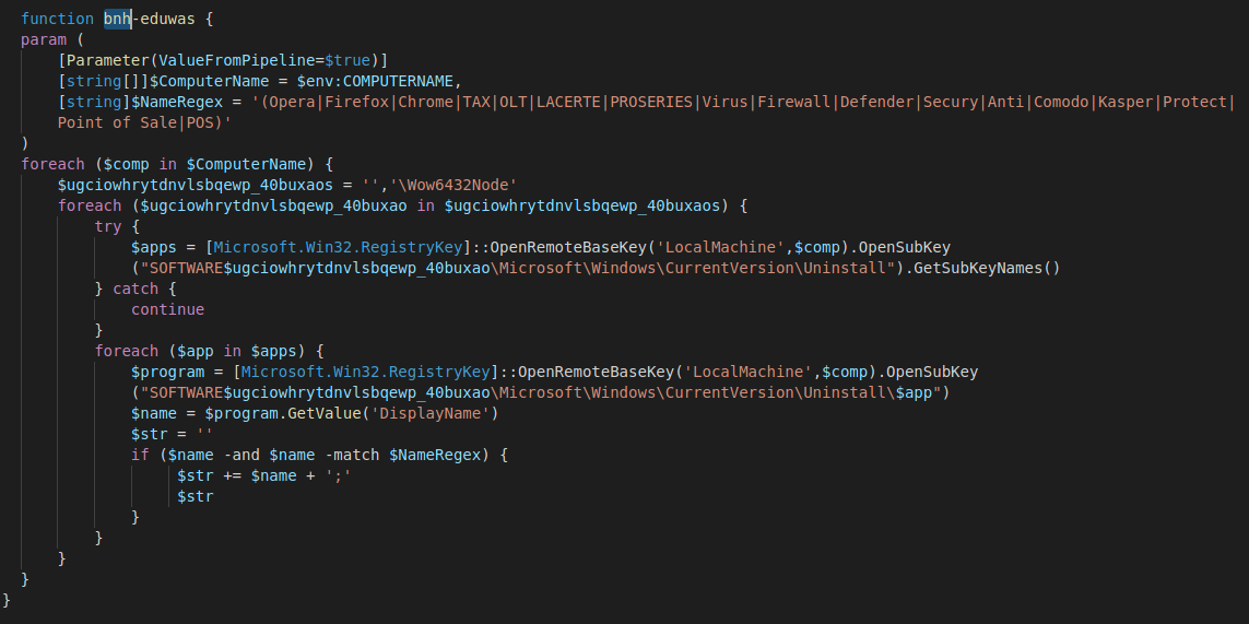 Code that searches the WIndows registry for software that is interesting to the LockBit attackers.