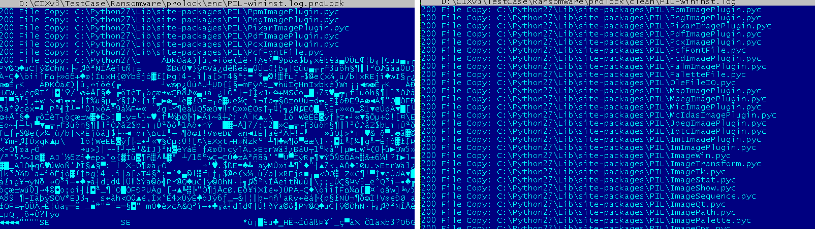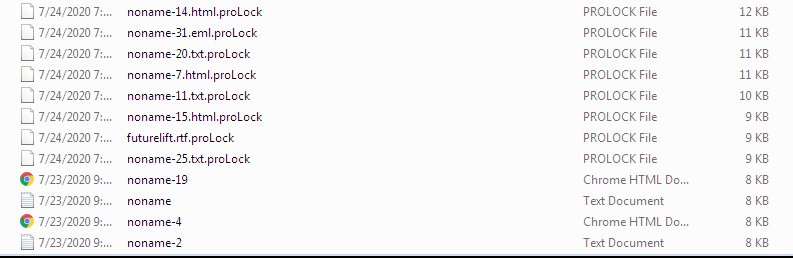 As it reads each file, it checks the length. If the file is under 8,192 bytes (0x2000 in hexidecimal), it skips the file. Otherwise, it begins encrypting the file, starting after the 8,192nd byte. After encrypting a file, the extension .prolock is appended to its file name (for example, a_very_large_text_file.txt becomes a_very_large_text_file.txt.prolock.)