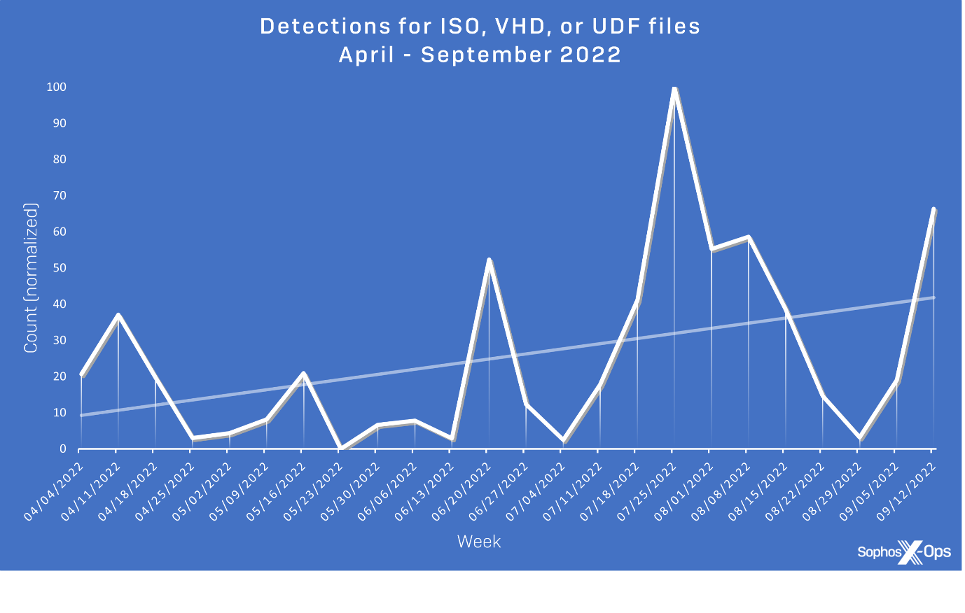Figure 16: Detections for ISO, VHD, or UDF files between April and September 2022