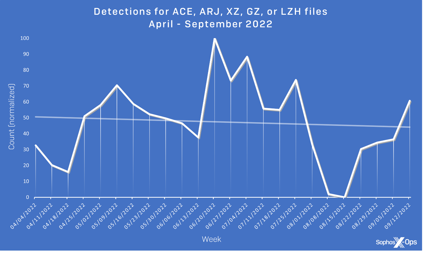 Figure 14: Detections for ACE, ARJ, XZ, GZ, or LZH files between April and September 2022