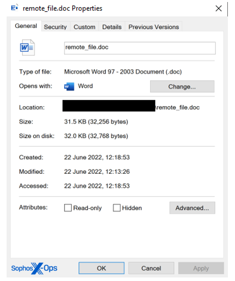 We see the following notification in the file’s properties: