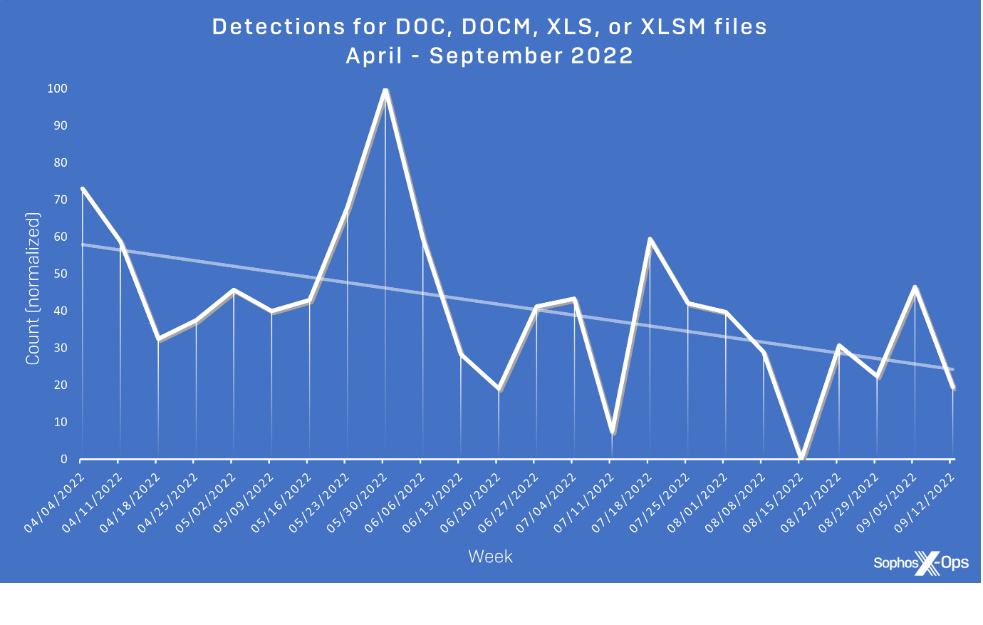 Figure 13: Detections for DOC, DOCM, XLS, or XLSM files between April and September 2022