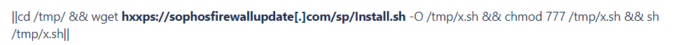 This initial injected command triggered an affected device to download a Linux shell script named Install.sh from a remote server on the malicious domain sophosfirewallupdate[.]com. The command also wrote this shell script to the /tmp directory on the device, used the chmod program to designate the file as executable, and executed it.