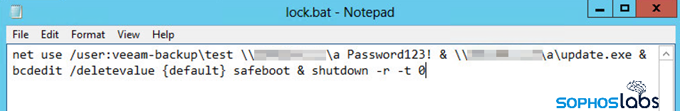 The attackers also appear to have leveraged another commercial IT management tool known as PDQ Deploy to push out Windows batch scripts to machines they planned to target. Sophos Rapid Response has created a chart that highlights the consequences of one of these batch files running. The batch files are run before the computer is rebooted into Safe Mode.