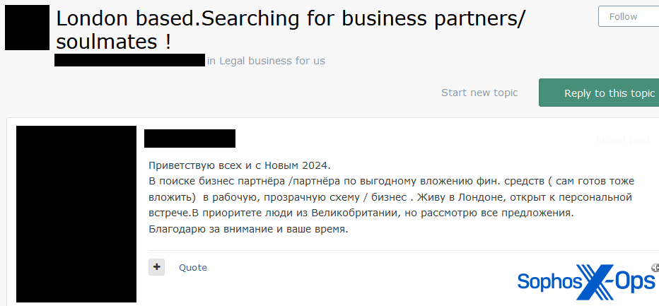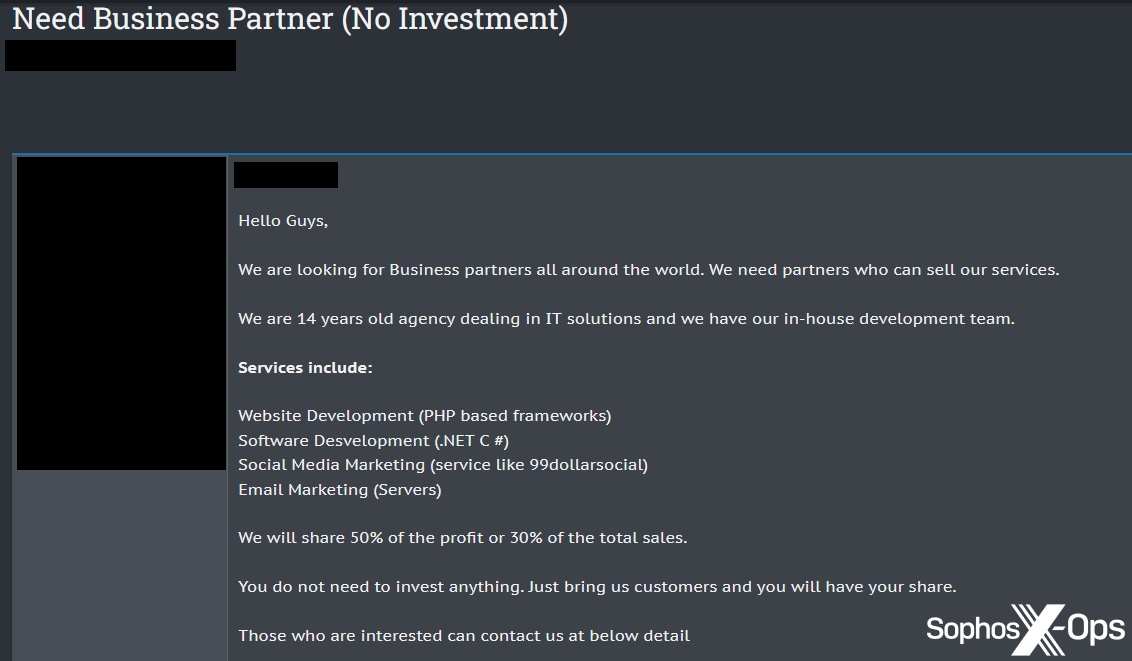 Figure 8: A threat actor seeks a business partner for a pre-existing “IT solutions” company