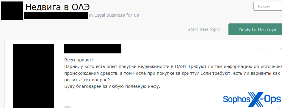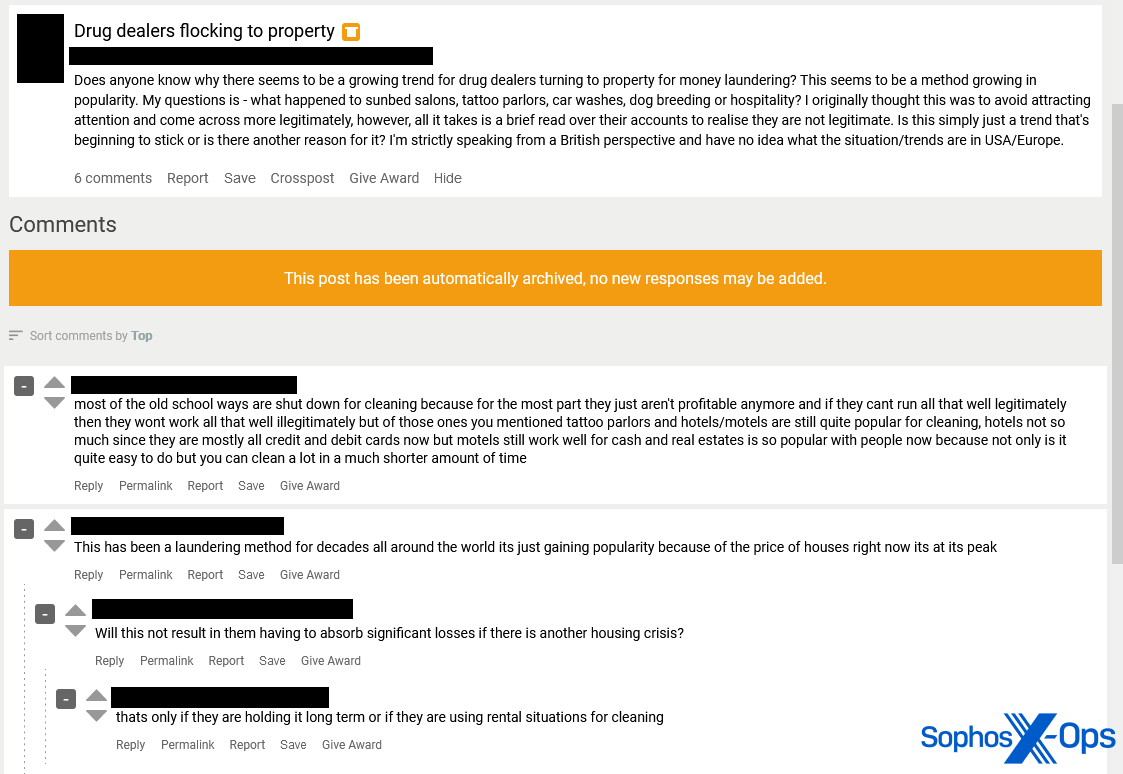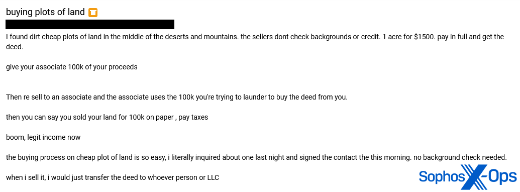Figure 27: Threat actors discuss the “growing trend for drug dealers turning to property for money laundering”