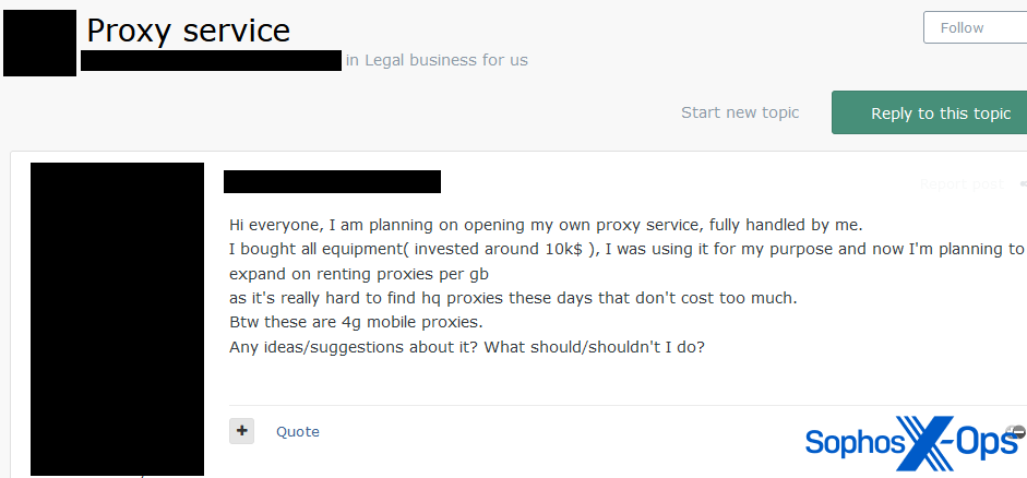 Figure 13: A threat actor seeks advice relating to their proxy service