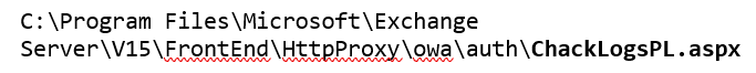 The webshell ChackLogsPL.aspx was dropped here: