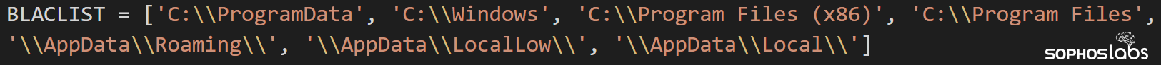 The ransomware has a built-in block list of folders the contents of which it will not encrypt: