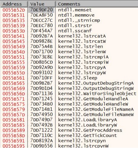 When it gets control, it dynamically obtains all APIs it needs by using hard-coded API hashes. To find matching hashes from the API names, the shellcode relies on a a slight modification of the ROR-13 algorithm. The only difference is that it checks if the zero byte is at the end of the loop, thus has an additional ROR for the terminating zero byte.
