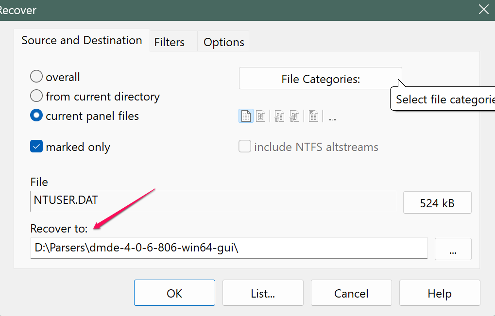 The tool offers numerous options and extensive functionality for various specific scenarios. To illustrate the steps for recovering files from possibly encrypted virtual disks, the following screenshots from the Windows GUI version demonstrate a typical and common scenario we encounter, with annotations indicating points of interest. The full DMDE manual is available on the product site.