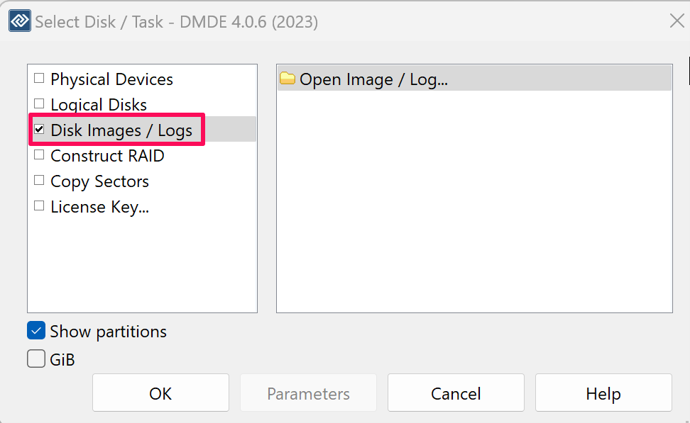Download the free version of the DMDE tool from the download page, choosing your preferred OS and interface. (Again, we’re strictly looking at Windows in this walkthrough.) Once downloaded and extracted, launch dmde.exe.