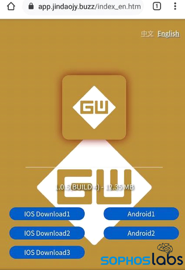 The link was to a page impersonating a Hong Kong based trading and investment company called Goldenway Group. The page had options to download both iOS and Android apps.