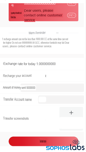 A translated transfer receipt from the fake app. These apps also had a customer support team. We tried communicating with the support teams using the chat embedded in the various fake apps; all of them resulted in similar replies indicating the possibility of same actor or actors behind all of them.