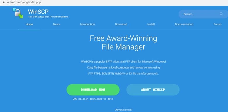 Figure 4: Winsccp[.]com is a malicious website mimicking the real WinSCP download page (winscp.net)