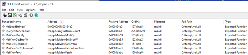 In this Nitrogen campaign, however, the threat actors use another tactic that is less commonly seen in sideloading attempts: using DLL proxying by forwarding exported functions (except for the main function MsiLoadStringW that contains the malicious code) to the legitimate msi.dll that resides in the system directory. Though DLL proxying is not a particularly novel technique, it typically occurs in DLL hijacking attacks rather than in DLL sideloading or preloading.