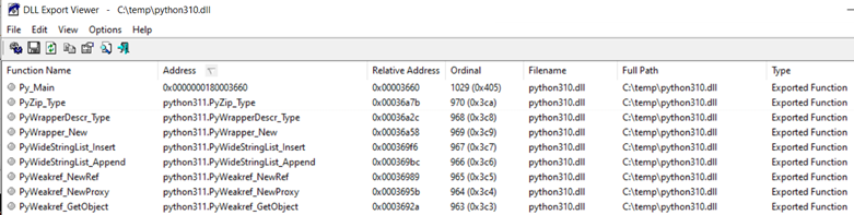 Figure 12: Python310.dll refers to the export in Python311.dll as python311.{exportname}