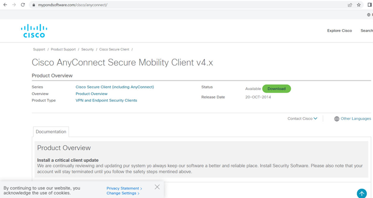Figure 6: A compromised WordPress site (mypondsoftware[.]com) distributing Trojanized Cisco AnyConnect Secure Mobility Client v4.x