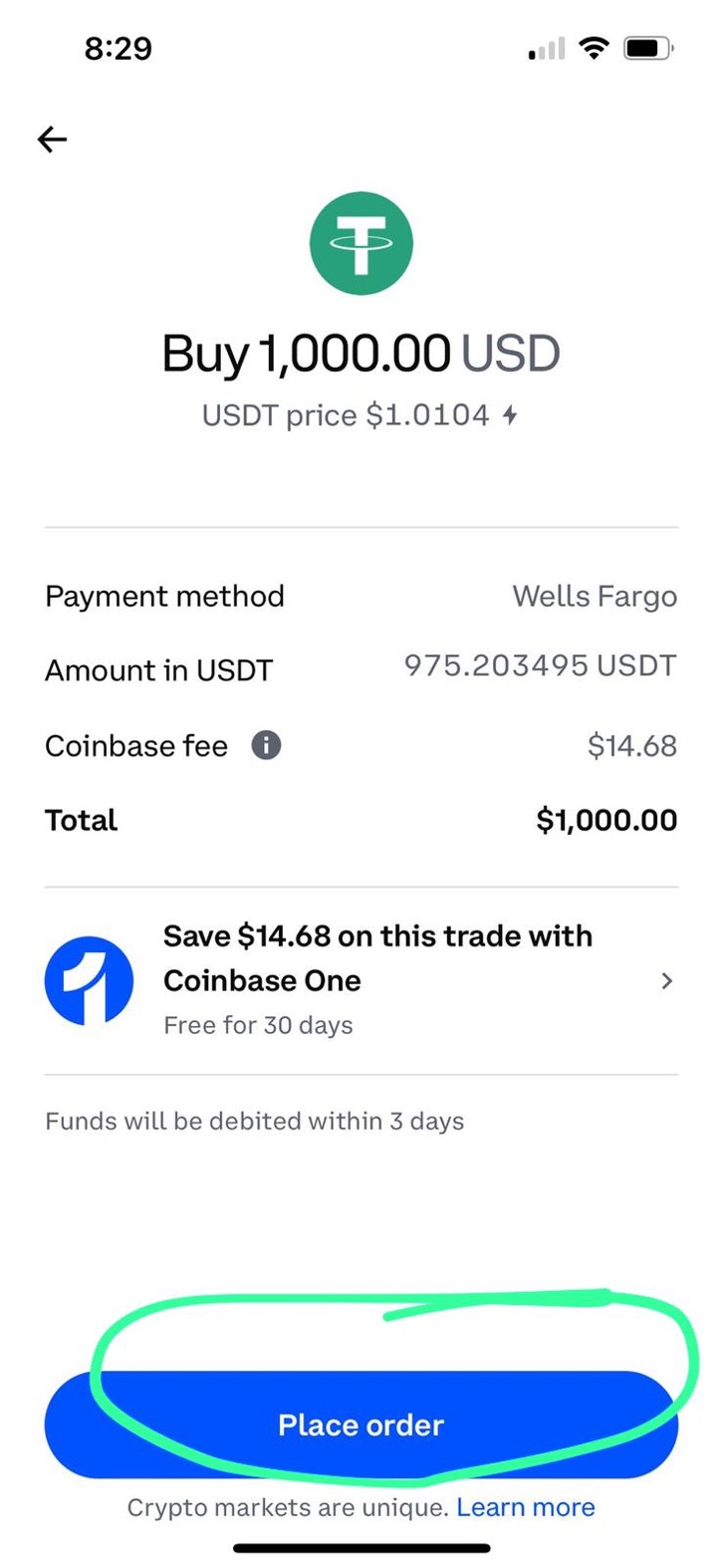 Frank questioned this unexpected use of Chinese, but rolled along with the further instructions. He agreed to invest $1,000, and then increase once he felt comfortable with the apps, purchasing an initial deposit of Tether (USDT) from Coinbase. “Vivian” told him it was as safe as leaving money in his bank. But Frank still expressed fear of losing his money, resisting putting the crypto into Trust Wallet, referring to warnings he had seen from his bank about cryptocurrency not being covered by deposit insurance, and recent bank failures: