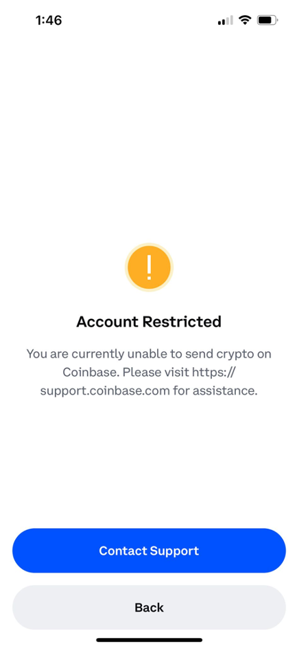 Figure 22: Frank’s account was locked by Coinbase for suspicious activity
