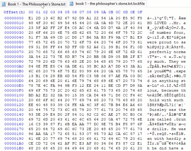 As you can see, the graphical representation of the text document encrypted by LockFile looks very similar to the original. This trick will be successful against ransomware protection software that performs content inspection with statistical analysis to detect encryption.