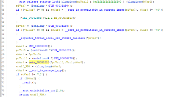 This is CRT, the C runtime library, not the real main function we’re looking for. However, after digging around we find it: