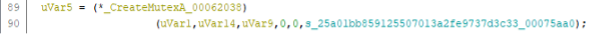 It then creates a mutex, to prevent the ransomware from running twice at the same time: