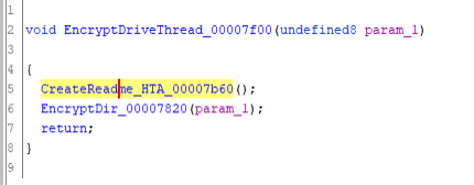 The function at 0x7f00 first creates the HTA ransom note, e.g., ‘LOCKFILE-README-[hostname]-[id].hta’ in the root of the drive. Instead of dropping a note in TXT format, LockFile formats its ransom note as a HTML Application (HTA) file. Interestingly, the HTA ransom note used by LockFile closely resembles the one used by LockBit 2.0 ransomware: