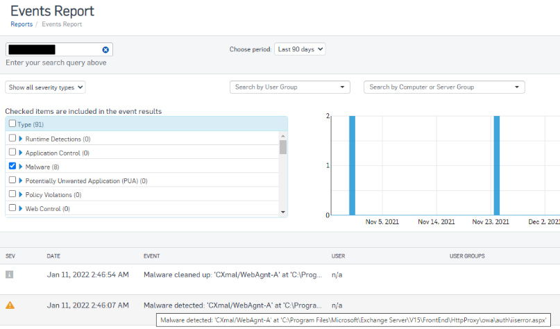 1. While logged into Sophos Central go to: Logs & Reports > Events