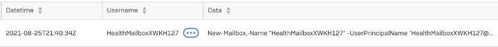 The first requires the command that created the account. This would be present in the MSExchange Management event logs in the form of a “New-Mailbox” cmdlet being issued. Legitimate HealthMailboxes are created automatically by the system and would not have a command being issued or tracked in these logs. Keep in mind that, depending on how much time has passed, the log may have overwritten the event. This information can be acquired through direct PowerShell or Live Discover.