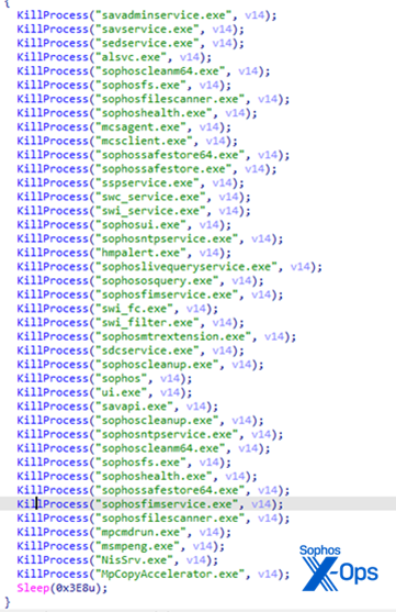 While investigating suspicious activity on a customer network, Sophos X-Ops Rapid Response (RR) discovered a pair of files left behind on some compromised machines. The two files work together to terminate processes or services used by a variety of endpoint security product vendors.