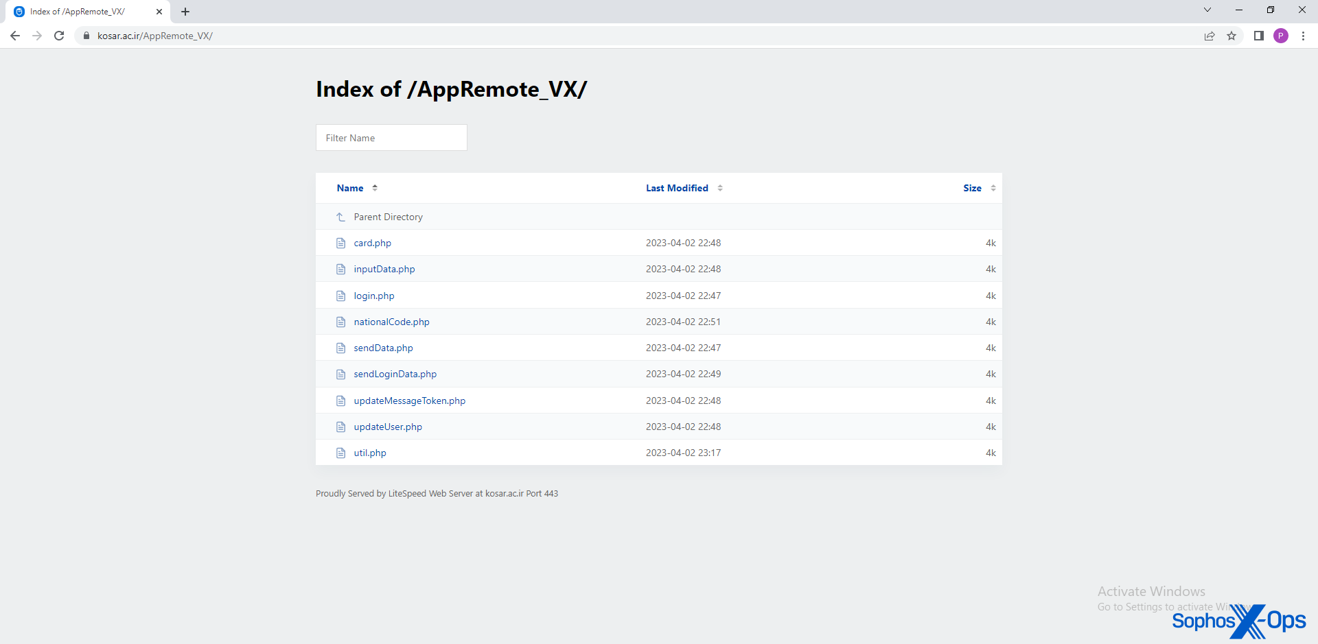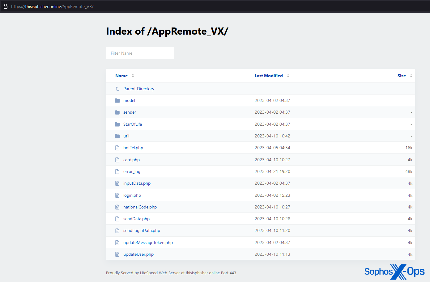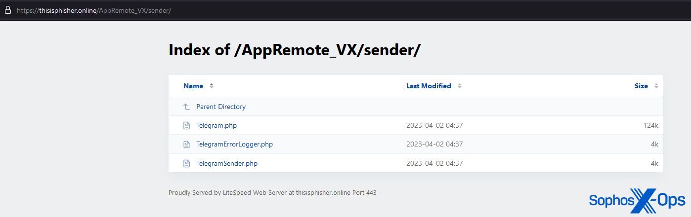 Figure 11: The directory listing for thisisphisher[.]online/AppRemote_VX. Note that this domain also uses LiteSpeed Web Server