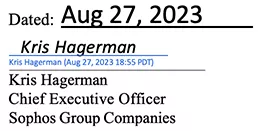 This Statement has been signed by Kris Hagerman, Chief Executive Officer, on behalf of Sophos Group Companies and has been published on the homepage of the Group’s website and on the Sophos Trust Center.