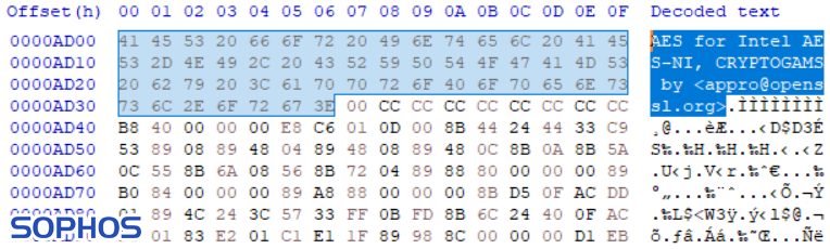 OpenSSL code embedded in the DearCry binary