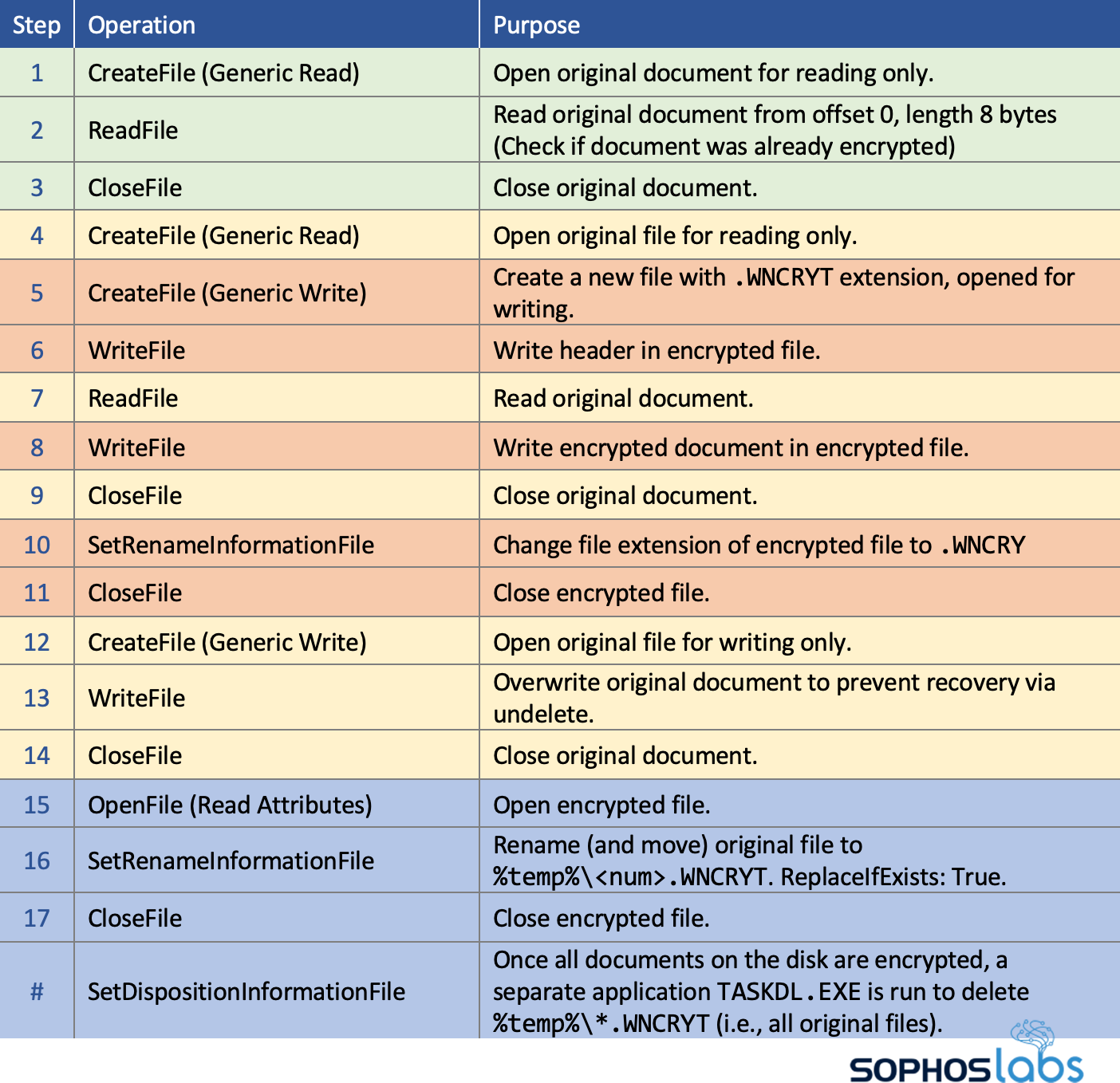 Details about file system behaviors of notorious ransomware, including WannaCry, are documented in our How Ransomware Attacks whitepaper.