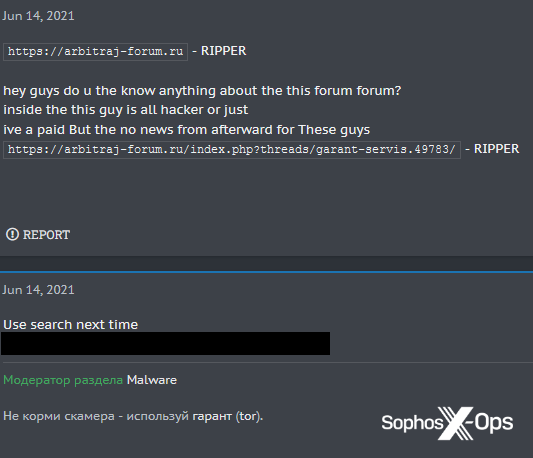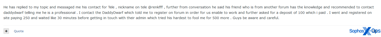 Figure 28: A user falls for a scam which plays on the name of a defunct criminal marketplace