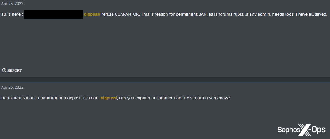 Figure 16: A user is called out in an XSS scam report for refusing a guarantor