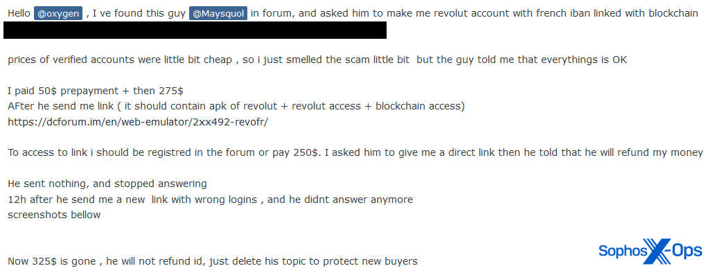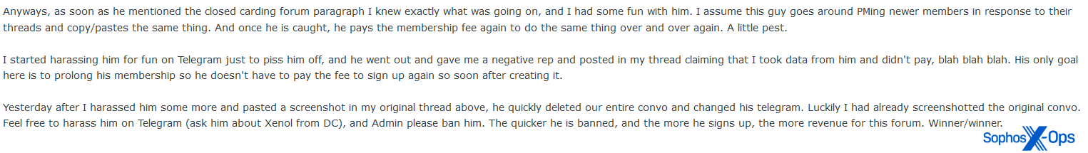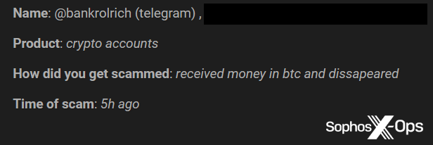 The user then posted the scammer’s information on Exploit, and invited other users to harass them: