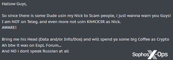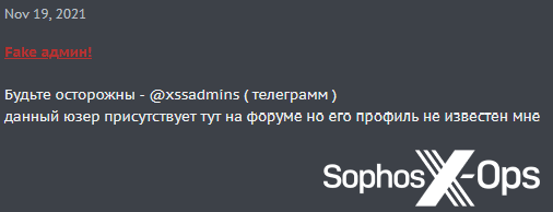 Figure 15: A user warns the XSS forum that someone is attempting to impersonate them